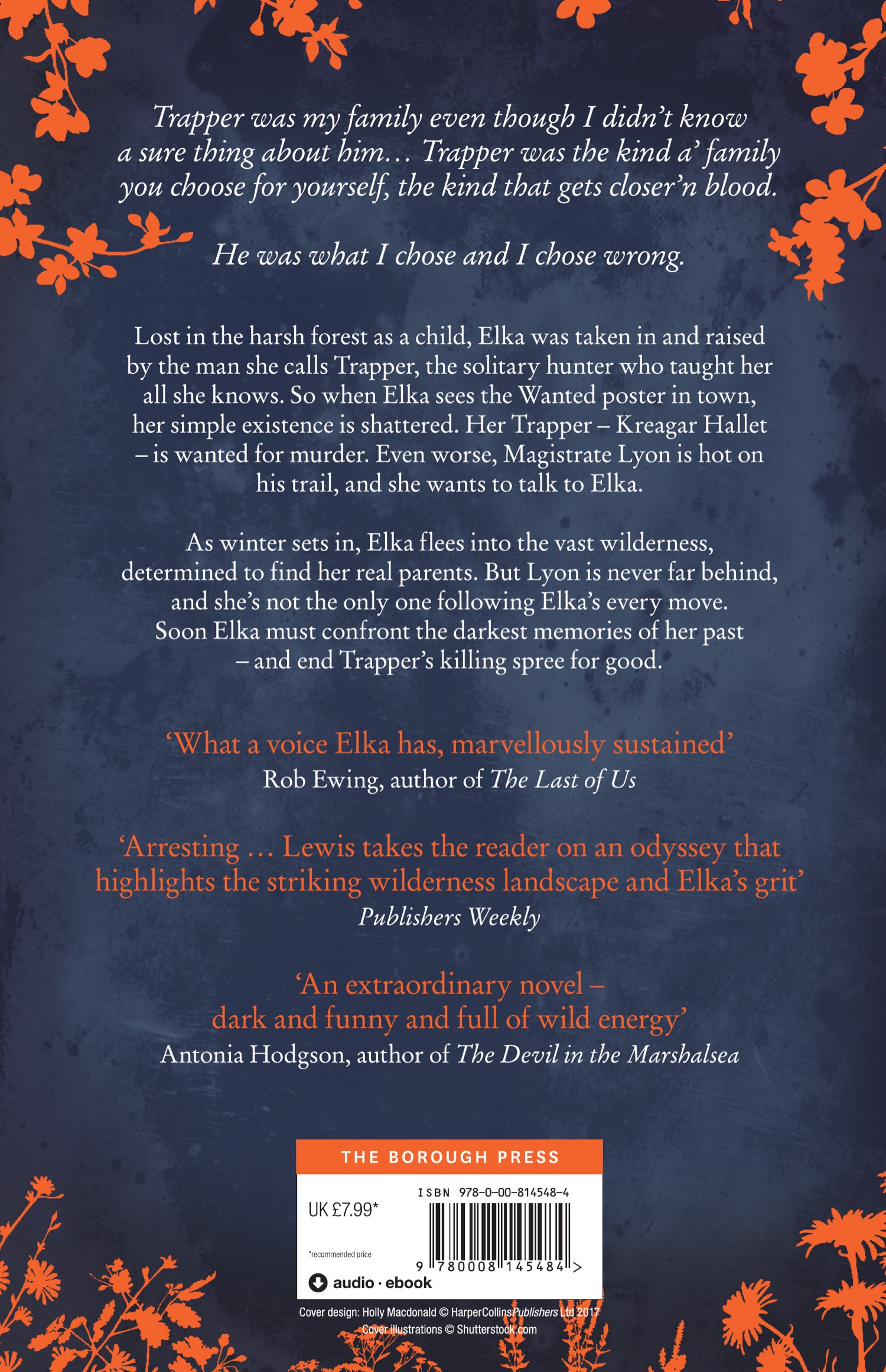 A debut literary thriller from an incredible new voice. What do you do when the man who gave you everything turns out to be a killer? Perfect for fans of STATION ELEVEN by Emily St. John Mandel. Trapper was my family even though I didn’t know a sure thing about him… Trapper was the kind a’ family you choose for yourself, the kind that gets closer’n blood. He was what I chose and I chose wrong. Lost in the harsh forest as a child, Elka was taken in and raised by the man she calls Trapper, the solitary hunter who taught her all she knows. So when Elka sees the Wanted poster in town, her simple existence is shattered. Her Trapper – Kreagar Hallet – is wanted for murder. Even worse, Magistrate Lyon is hot on his trail, and she wants to talk to Elka. As winter sets in, Elka flees into the vast wilderness, determined to find her real parents. But Lyon is never far behind, and she’s not the only one following Elka’s every move. Soon Elka must confront the darkest memories of her past- and end Trapper’s killing spree for good.