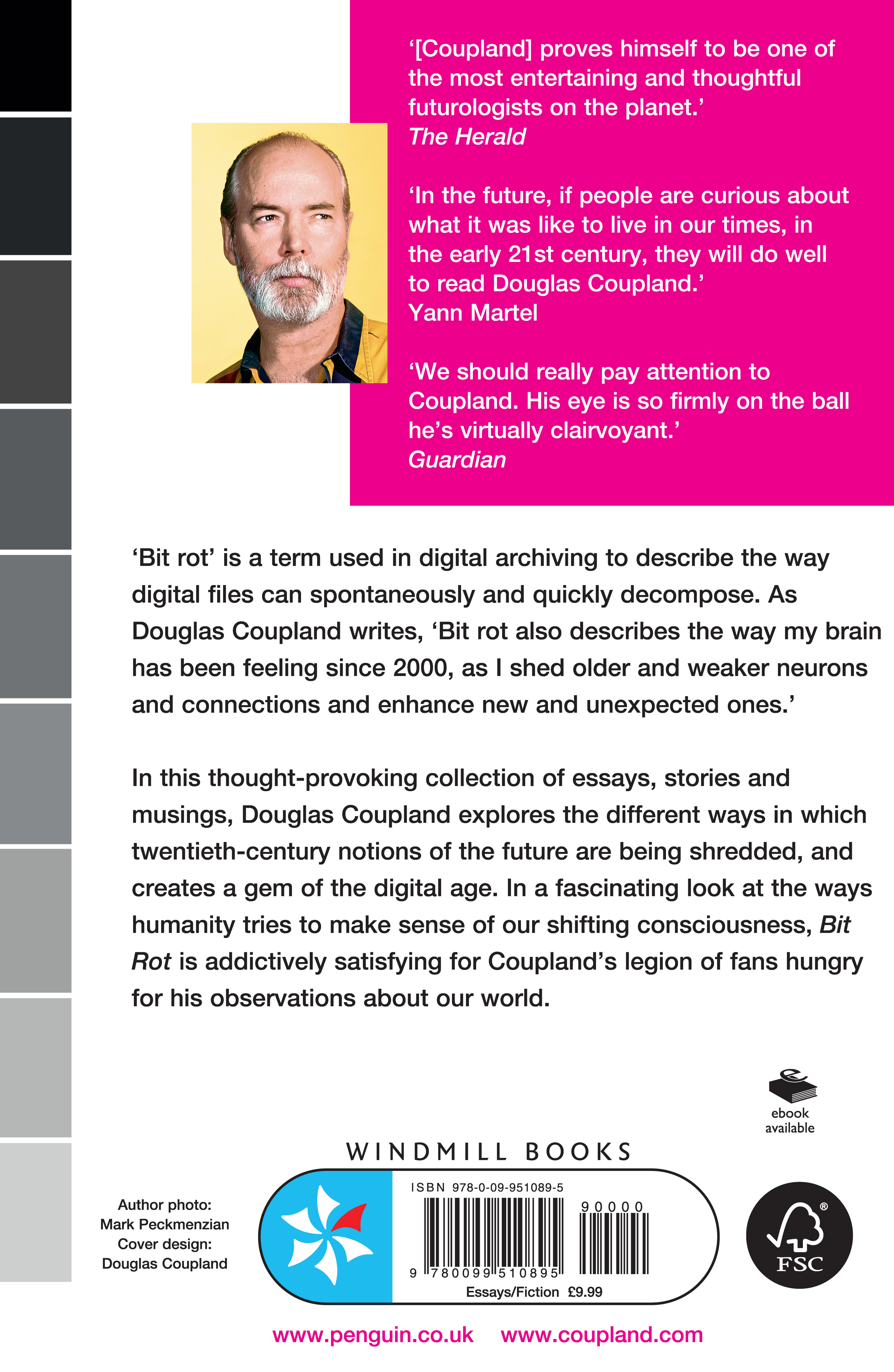 Coupland adopts…an Andy Warholish mode, somewhere between mocking, lamenting, celebrating even the most troubling aspects of postmodernity. [Coupland’s] new collection has its basis in that rarefied literary form, the art catalogue … [he] is at his best when he muses on new opportunities and challenges presented by technology. [T]he Vancouver-based tech-seer, critic, author and artist again proves himself to be one of the most entertaining and thoughtful futurologists on the planet. Bit Rot is wry and wise, terrifying and hilarious, and it makes us LOL while still using “LOL” correctly. Every page is full of wit, surprise and delight