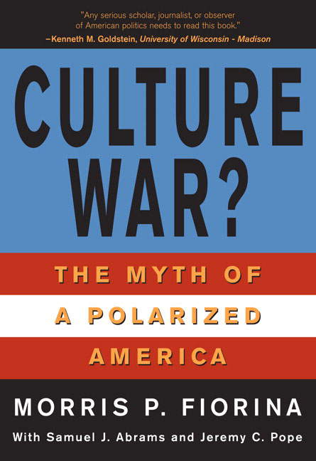 1. Culture War? 2. A 50:50 Nation? The Red and the Blue States. Is the Country Polarized? Red v. Blue States: A Summary. The Obvious Hypothesis. 3. A 50:50 Nation? Beyond the Red and the Blue. Is the Country Polarized? Demographic and Political Groups. Partisan Polarization. Is the Country Polarized? Individuals. Summary: Not a Polarized Country. 4. A Closer Look at Abortion. Public Attitudes Toward Abortion: "I'm Pro-Choice, But..." Abortion and the Gender Gap. Epilogue. 5. A Closer Look at Homosexuality. Americans Attitudes toward Homosexuals and Homosexuality. The Aftermath of Lawrence. 6. Have Electoral Cleavages Shifted? The Rise of Religious Cleavages? The Decay of Economic Cleavages? Appendix to Chapter 6. 7. Reconciling Micro and Macro Evidence. Centrist Voters and Polarized Elites. Voter Response to Elite Polarization. Appendix to Chapter 7: A Deep Identification Problem in Electoral Studies. 8. How Did It Come to This and Where Do We Go From Here? The Ascendance of the Purists. The Expansion of Government. The Rise of Participatory Democracy. The Hijacking of American Democracy. Three Important Caveats. Can Anything Be Done? A Final Thought.