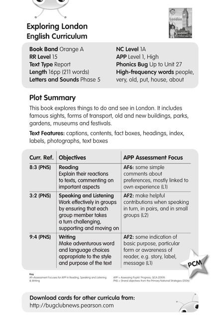 BC NF Orange A/1A Exploring London Guided Reading Card