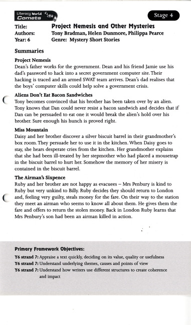 Literacy World Comets Stage 4:  Project Nemesis Guided Reading Card Framework Edition: (LITERACY WORLD COMETS)