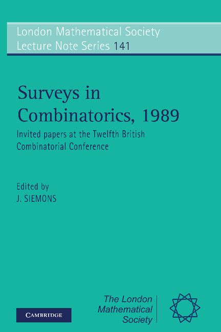 Surveys in Combinatorics, 1989: Invited Papers at the Twelfth British Combinatorial Conference(Series Number 141 London Mathematical Society Lecture Note Series)