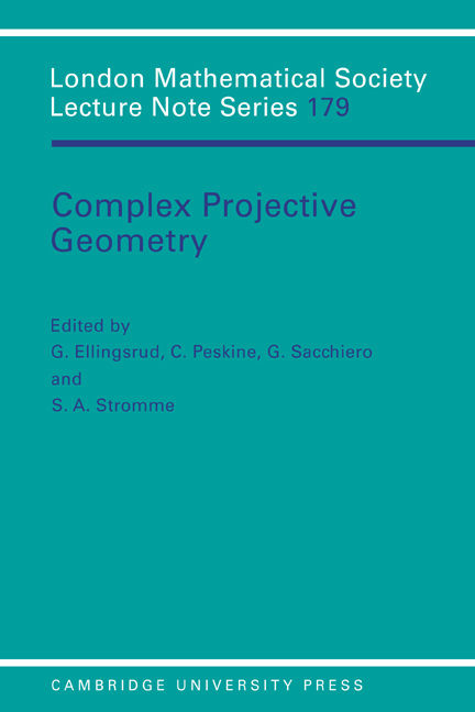 1. Speciality one rational surfaces in P4 J. Alexander; 2. Bounding sections of bundles on curves E. Arrondo and I. Sols; 3. The smooth surfaces of degree 9 in P4 A. B. Aure and K. Ranestad; 4. Compactifying the space of elliptic quartic curves D. Avritzer and I. Vainsencher; 5. Threefolds of degree 11 in P5 M. Beltrametti, M. Schneider and A. J. Sommese; 6. Complete extensions and their map to moduli space A. Bertram; 7. On the Betti numbers of the moduli space of stable bundles of rank two on a curve E. Bifet, F. Ghione and M. Letizia; 8. Gaussian maps for certain families of canonical curves C. Ciliberto and R. Miranda; 9. Geometry of the Horrocks bundle on P3 W. Decker, N. Manolache and F. O. Schreyer; 10. Stability and restrictions of Picard bundles, with an application to the normal bundles of elliptic curves L. Ein and R. Lazarsfeld; 11. Sections planes et majoration du genre des courbes gauches Ph. Ellia and R. Strano; 12. A tribute to Corrado Segre F. Ghione and G. Ottaviani; 13. Un aperçu des travaux mathématiques de G. H. Halphen (1844–1889) L. Gruson; 14. The source double-point cycle of a finite map of codimension one S. Kleiman; 15. Fibré déterminant et courbes de saut sur les surfaces algébriques J. Le Potier; 16. Courbes minimales dans les classes de biliaison M. Martin-Deschamps and D. Perrin; 17. Fano 3-folds S. Mukai; 18. Polarized K3 surfaces of genus 18 and 20 S. Mukai; 19. Projective compactifications of complex affine varieties S. Muller-Stach; 20. On generalized Laudal’s lemma R. Strano; 21. Sur la stabilité des sous-variétés lagrangiennes des variétés symplectiques holomorphes C. Voisin; 22. Introduction to Gaussian maps on an algebraic curve J. Wahl; 23. Some examples of obstructed curves in P3 C. H. Walter.