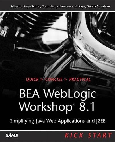 This is the eBook version of the printed book. If the print book includes a CD-ROM, this content is not included within the eBook version. BEA WebLogic Workshop 8.1 Kick Start shows you how to make J2EE programming easier, providing the fastest path to productivity with BEA WebLogic Workshop 8.1. The authors show how Workshop leverages the power of BEA WebLogic Platform 8.1, including WebLogic Server, WebLogic Portal, and WebLogic Integration. With BEA WebLogic Workshop 8.1 Kick Start, you'll learn to build J2EE applications and see how each concept works within a real-world online casino application developed over the course of the book. You'll see how Workshop 8.1 facilitates every step of the development process, from design to deployment. The authors' expert insights and tips, along with dozens of practical examples that you can put to use immediately, will have you up and running at full speed in nothing flat. The included CD-ROM contains the Developer's Edition of BEA WebLogic Platform 8.1 (including WebLogic Workshop 8.1) and all the sample code and examples, with a complete version of the casino application developed over the course of the book. In addition you can view the entire book in searchable electronic form.