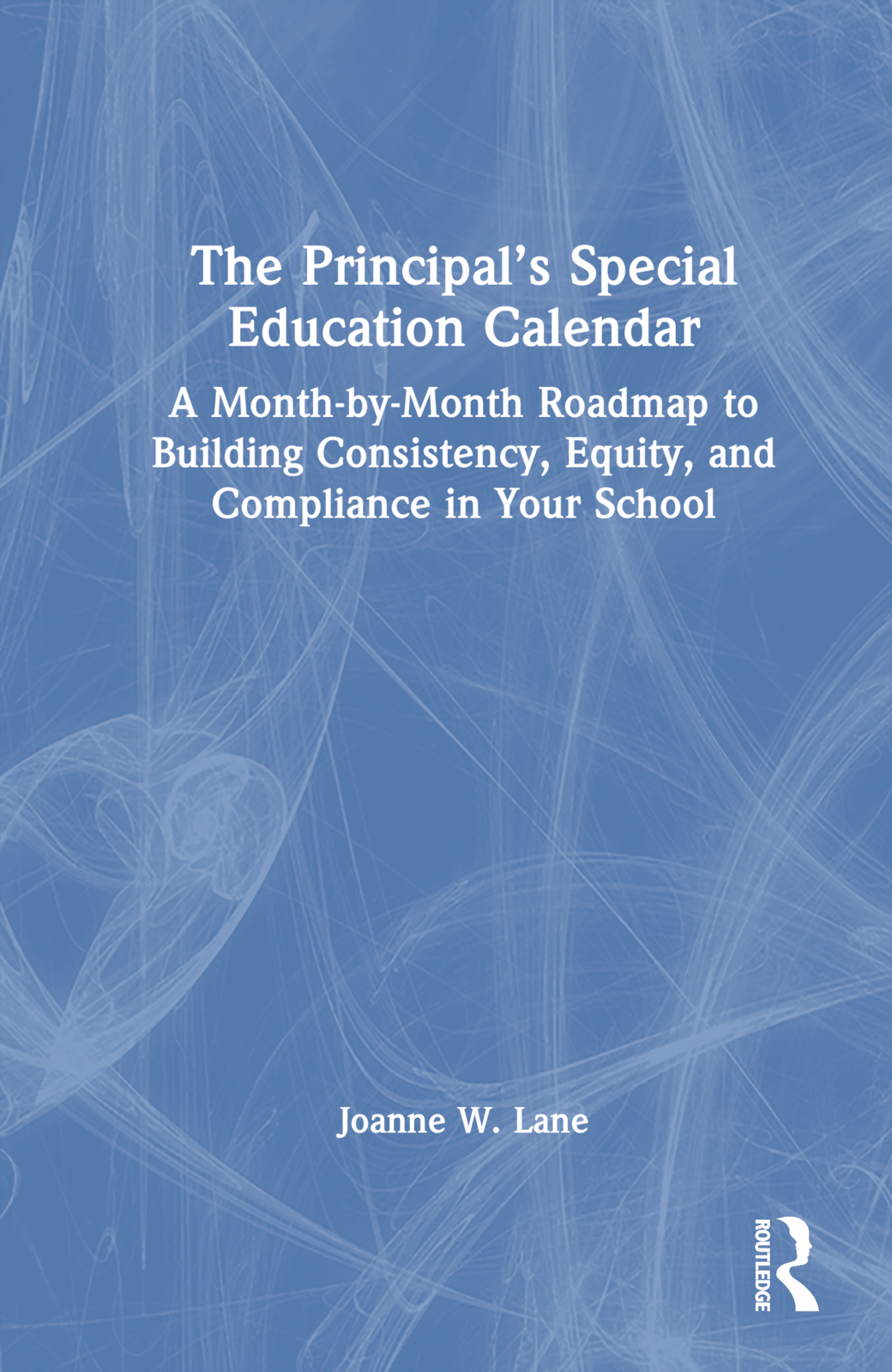 “Dr. Joanne Lane has woven federal and state special education laws into the fabric of school routines, preparing leaders and teachers on how best to avoid non-compliance. Using the format of the school calendar, Dr. Lane highlights common areas of neglect while suggesting ways to enhance the educational experience of students with special needs. Every educator must have this well-written book on their desk to address organizational preparation, parental communications, and emergency situations that could save the lives of our precious students.”