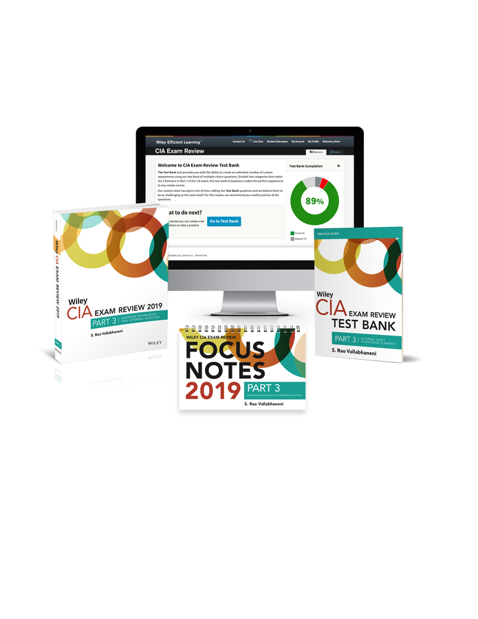 Complete Study Pack for CIA Part 3 The three items in our Complete Study Pack for CIA Part 3 work in tandem to provide you with the knowledge, understanding and practice you need to pass this part. Digest key ideas in various formats and levels of detail. Then test your skill with online practice sessions to ensure you’re ready for exam day. Part Pack Includes: Wiley CIAexcel Exam Review 2019: Part 3, Internal Audit Knowledge Elements, which thoroughly explains all Part 3 domains and concepts. Internal Audit Basics Knowledge Elements Notes to help you memorize key formulas and facts with mnemonics. One-year access to our Online Test Bank with over 3,800+ Internal Audit Knowledge Elements practice questions with explanations.
