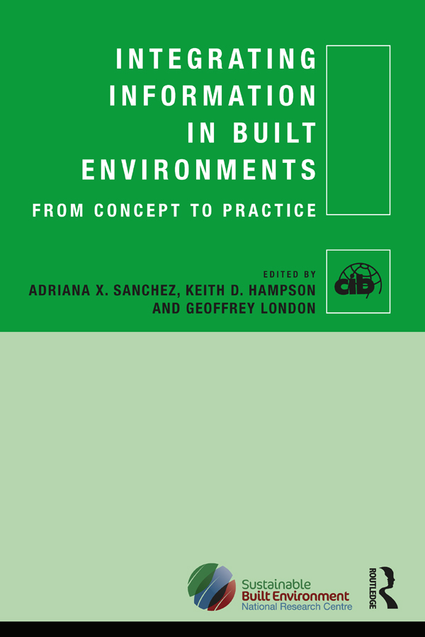Adriana X. Sanchez is currently a research associate at the Australian Sustainable Built Environment National Research Centre and a PhD Candidate at the University of New South Wales through the Cooperative Research Centre for Low Carbon Living. She is one of the coordinators of the CIB Task Group 90: Information Integration in Construction. Keith D. Hampson is CEO of the Australian Sustainable Built Environment National Research Centre, and Professor of Construction Innovation at Curtin University, Australia. He has a Bachelor of Engineering with Honours and an MBA from Queensland University of Technology (QUT) and a PhD in Civil and Environmental Engineering from Stanford University, USA. Geoffrey London currently works at the University of Western Australia. He served as Government Architect for the last 13 years in Victoria and Western Australia; this is a role that nourishes the production of well-produced sustainable buildings.
