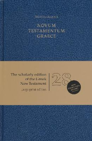 The Novum Testamentum Graece (NA28) is the worldwide standard among the Greek editions of the New Testament. About this edition: This large-print edition is designed to make reading more comfortable with larger fonts than the standard NA28 in both the main text and the apparatus. In addition, this edition has generous margins for taking notes. About the NA28: 28 boasts a revised text-critical apparatus that has been both expanded and simplified. The linking of variants by sed or et and the distinction between consistently cited witnesses of the first and second order have been removed. In addition, this NA28 includes readings from the recently discovered Papyri 117127 for the first time, opening up interesting perspectives particularly for the Acts of the Apostles. The Catholic Epistles in this edition have been made consistent with the Editio Critica Maior, resulting in more than 30 modifications in the main text and a completely revised text-critical apparatus that includes a new selection of witnesses and variants. The cross-references in the margin were also systematically reviewed and revised, and references to early Jewish literature were added. About the editor: The Institute for New Testament Text Research is a university institute in Mnster that researches the history of the transmission of the New Testament in its original Greek language. In addition to the Novum Testamentum Graece (Nestle-Aland), the German Bible Society also publishes the Greek New Testament and the Editio Critica Maior.
